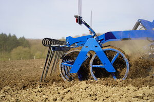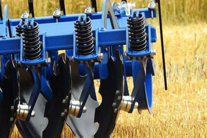 Отдельно подвешенные диски, гарантируют ваш успех при первичной обработке стерни. Линейное расстояние между дисками в 130 мм дает возможность сплошной обработки почвенного пласта, достигая тем самым отличное смешивание. Установленный также на пружине боковой разравнивающий диск поможет вам оптимально выровнять край следа культиватора. Пружинные стойки –это интегрированная 3D защита.